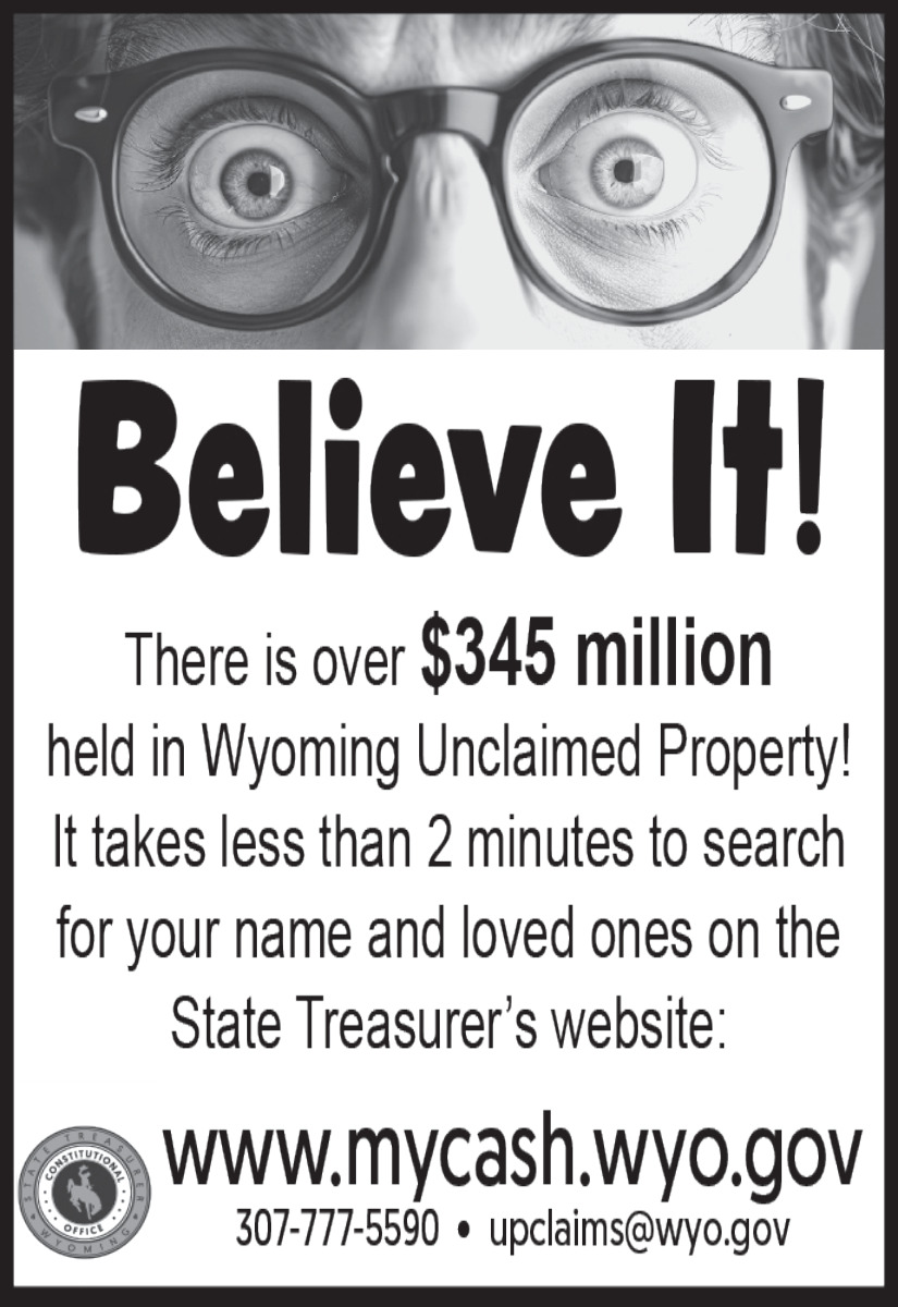 Oct 15, 2025. Wyoming State Treasurer Government Ads from Rawlins Daily Times