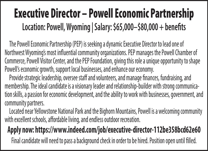 Oct 25, 2025. Powell Economic Partnership Jobs Ads from Rawlins Daily Times