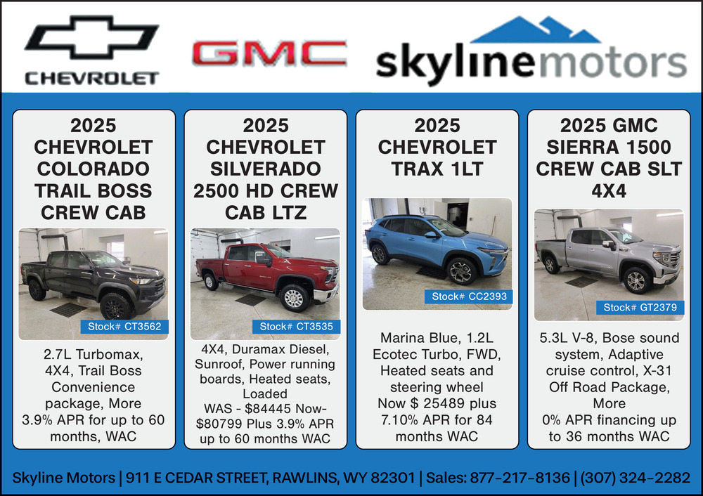Dec 13, 2025. Skyline Motors Inc. Auto Dealers Ads from Rawlins Daily Times