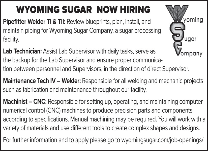 Dec 24, 2025. Wyoming Sugar Company Jobs Ads from Rawlins Daily Times