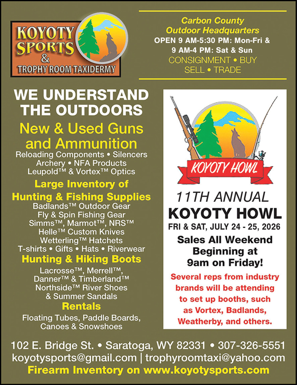 Apr 25, 2026. Koyoty Outdoor Sports, Fur & Trading, Co. Sporting Goods Ads from Rawlins Daily Times
